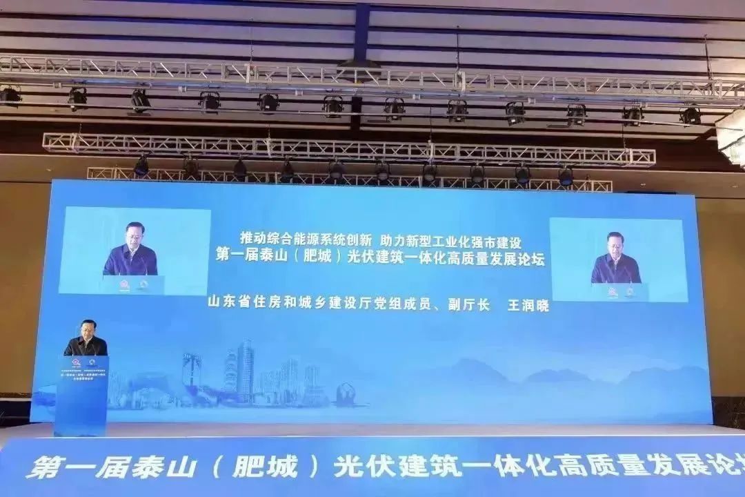 王润晓在开幕式上致辞,指出,此次论坛既是一次高水平的学术研讨,也是产学研的深度对接,希望泰安市以此为契机,发挥产业优势和企业主体作用,不断完善技术水平、规范部署应用、扩大建设规模,为全省光伏建筑一体化项目建设给予典型经验和优秀范例。省住房和城乡建设厅将全面落实“碳达峰、碳中和”重大战略决策部署,着眼提升建筑能源利用效率,从政策、管理、技术、标准等方面综合施策,加快推进光伏应用,助力新能源高质量开展。
